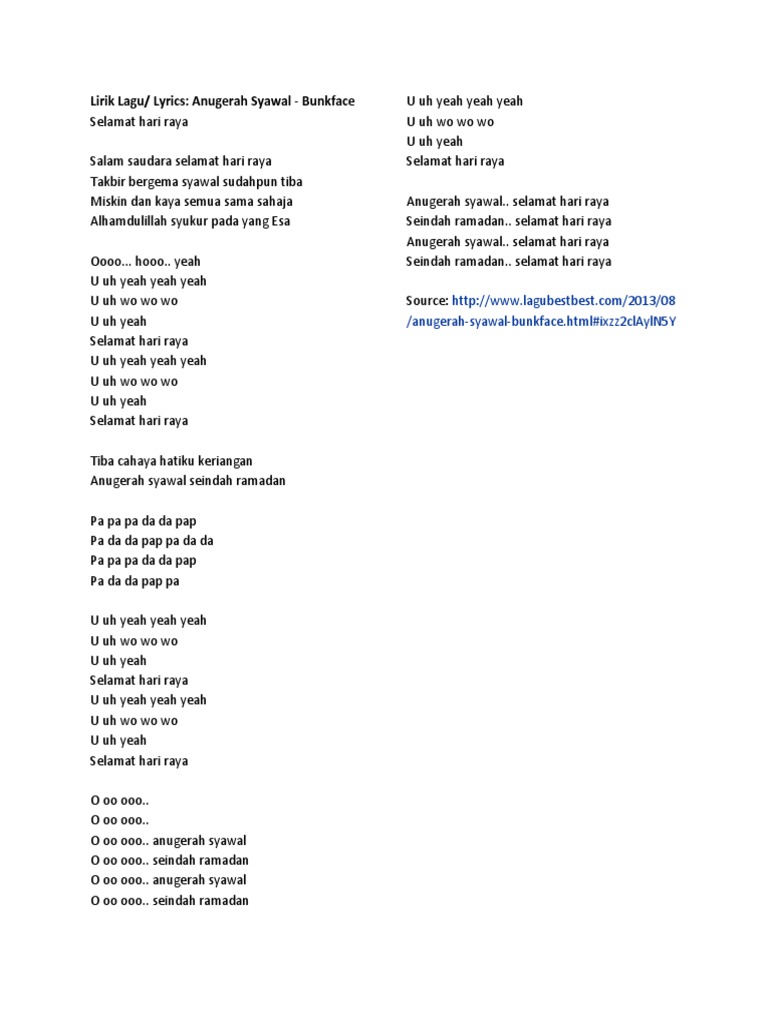 Lirik Lagu Anugerah Syawal Bunkface. Takbir bergema syawal sudahpun tiba. Koleksi lirik dan video lagu raya 2016 121400 lagu raya new releases sudirman.